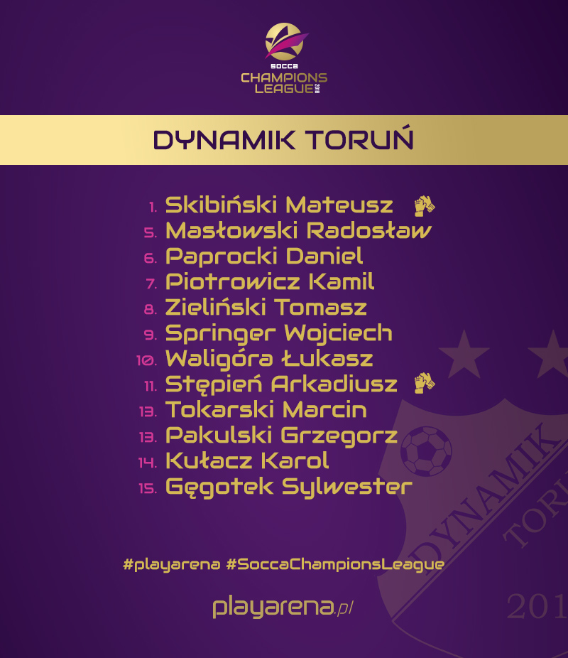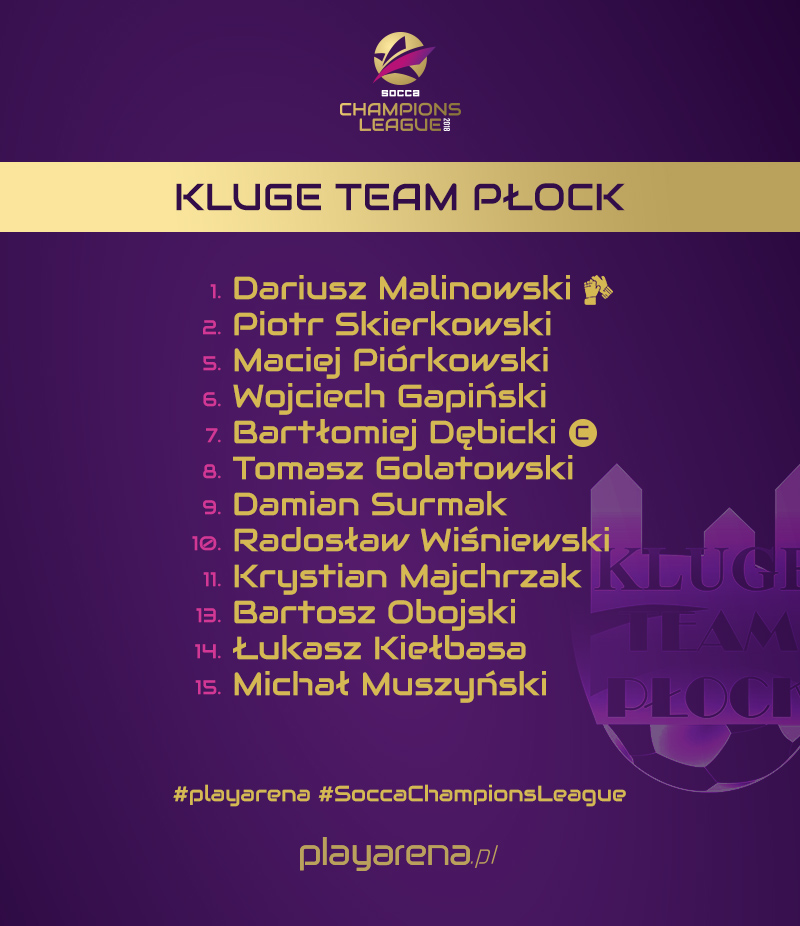W turnieju SOCCA Champions League wystartują 24 drużyny z 15 państw, w tym dwie reprezentujące Polskę. Obie są doskonale znane kibicom śledzącym rozgrywki Playarena. Kluge Team Płock to bardzo solidny i doświadczony zespół, którego boiskowym liderem są Bartłomiej Dębicki i Tomasz Golatowski. Podczas turnieju eliminacyjnego w Pruszkowie Płocczanie nie oddali nawet punktu, pozwolili sobie na stratę zaledwie trzech bramek i awamsowali do finałów pozostawiając w pokonanym polu m.in. Dzbany Łódź. Jednak podczas finału w Chorzowie aż dwukrotnie musieli przełknąć gorycz porażki. I o ile strata punktów w ostatnim meczu fazy grupowej z Ganadorem Warszawa nie była jakoś szczególnie bolesna, tak wielki niedosyt pozostał po turbo dogrywce w finałowym starciu na Mazowsze pojechało jedynie srebro.